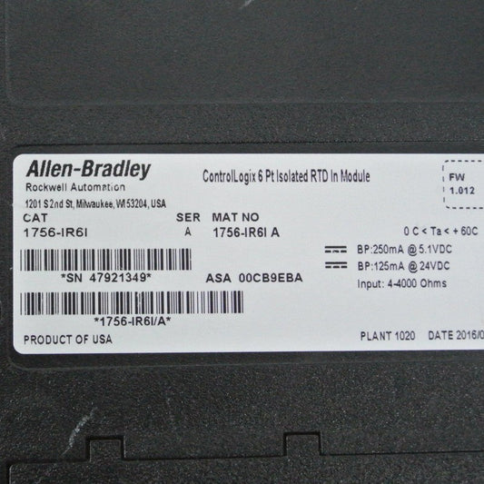 Allen Bradley 1756-IR6I ControlLogix 6Pt Isolated RTD In Module