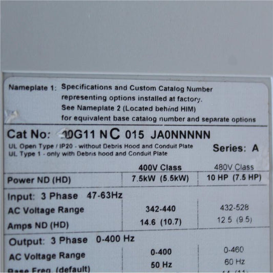Allen Bradley 20G11NC015JA0NNNNN Inverter 7.5kW