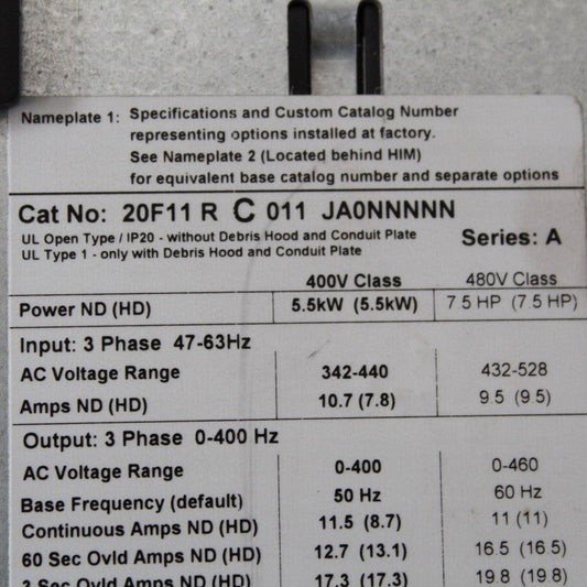 Allen Bradley 20F11RC011JA0NNNNN PowerFlex Inverter Series A 5.5kW