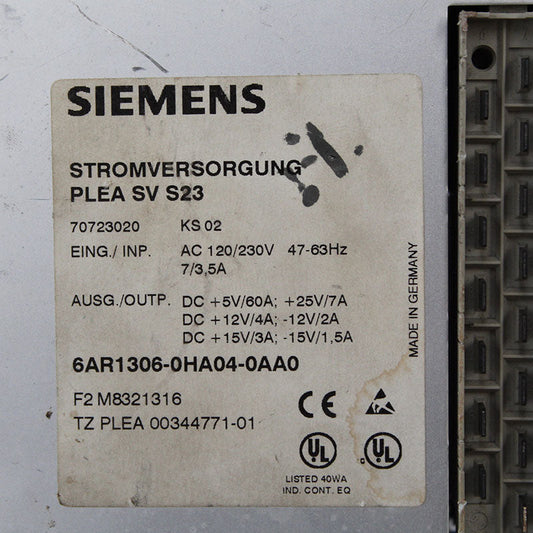 SIEMENS 6AR1306-0HA04-0AA0 PLEA SV S23 Power Supply Unit